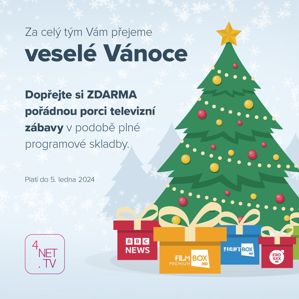 (15.12.2023) Vánoční akce Máme pro Vás dobrou zprávu. I na letošní vánoční svátky jsme pro všechny naše zákazníky televize nachystali bohatou nadílku kanálů. Od 15. 12. 2023 do 5. 1. 2024 budou mít automaticky všichni k dispozici plnou programovou skladbu (MAX).